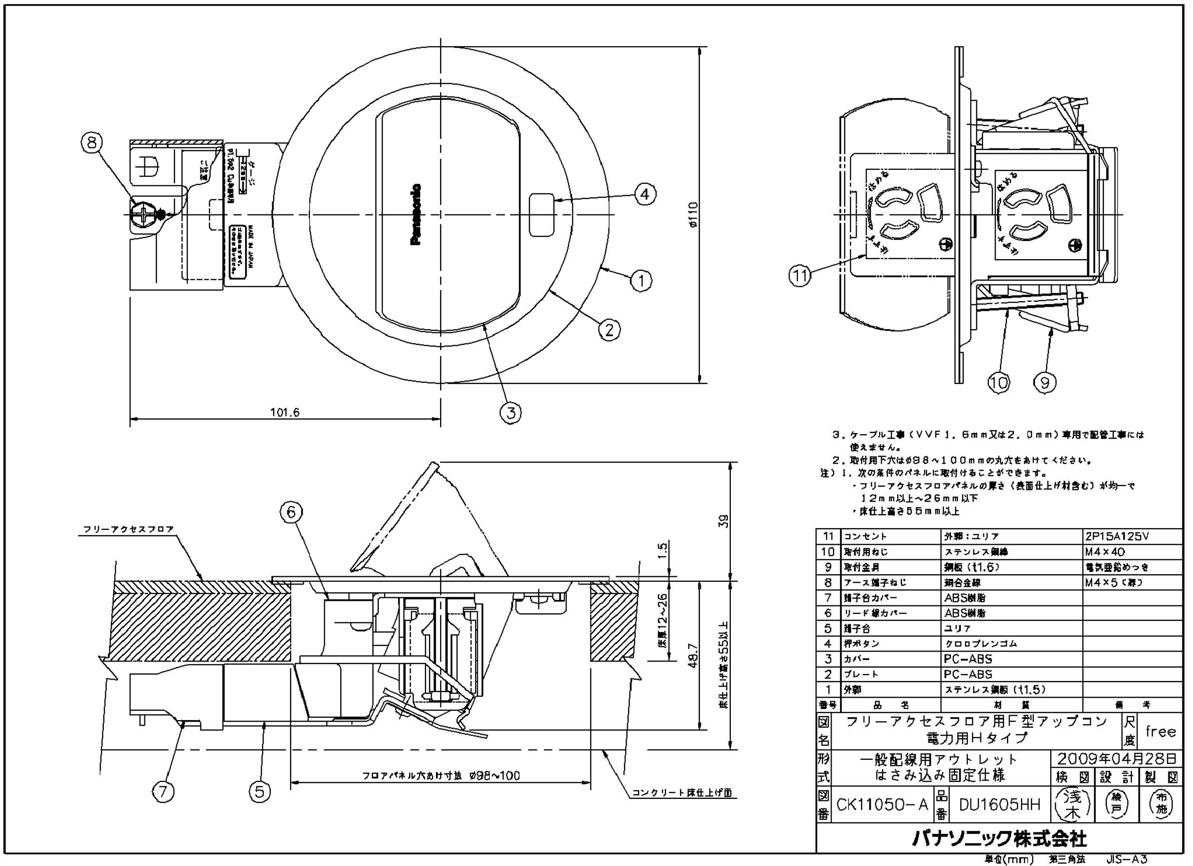床用コンセント フラット型フロアコンは、アウトレットボックスを使わずに、施工することはできますか。 大丸穴カバーを使って取り付ける場合 - フロア配線システム- Panasonic。