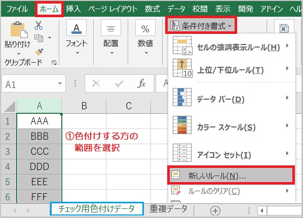重複データのセルに色を付ける 条件付き書式 :Excelの基本操作。