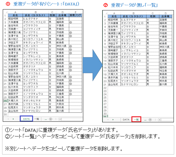 EXCEL VBA 重複データをチェック・抽出・別シート・メッセージ テクニック。