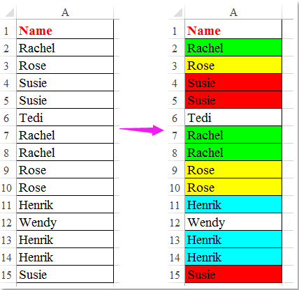 Excelで異なる色で重複する値をハイライトするにはどうすればよいですか。