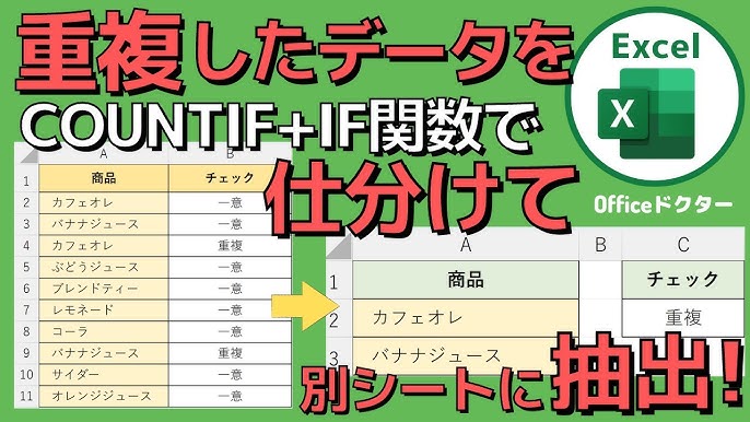 エクセルで「重複する」データと「重複しない」データを仕分ける方法の解説!さらに別シートに抽出する方法も解説 Excel。