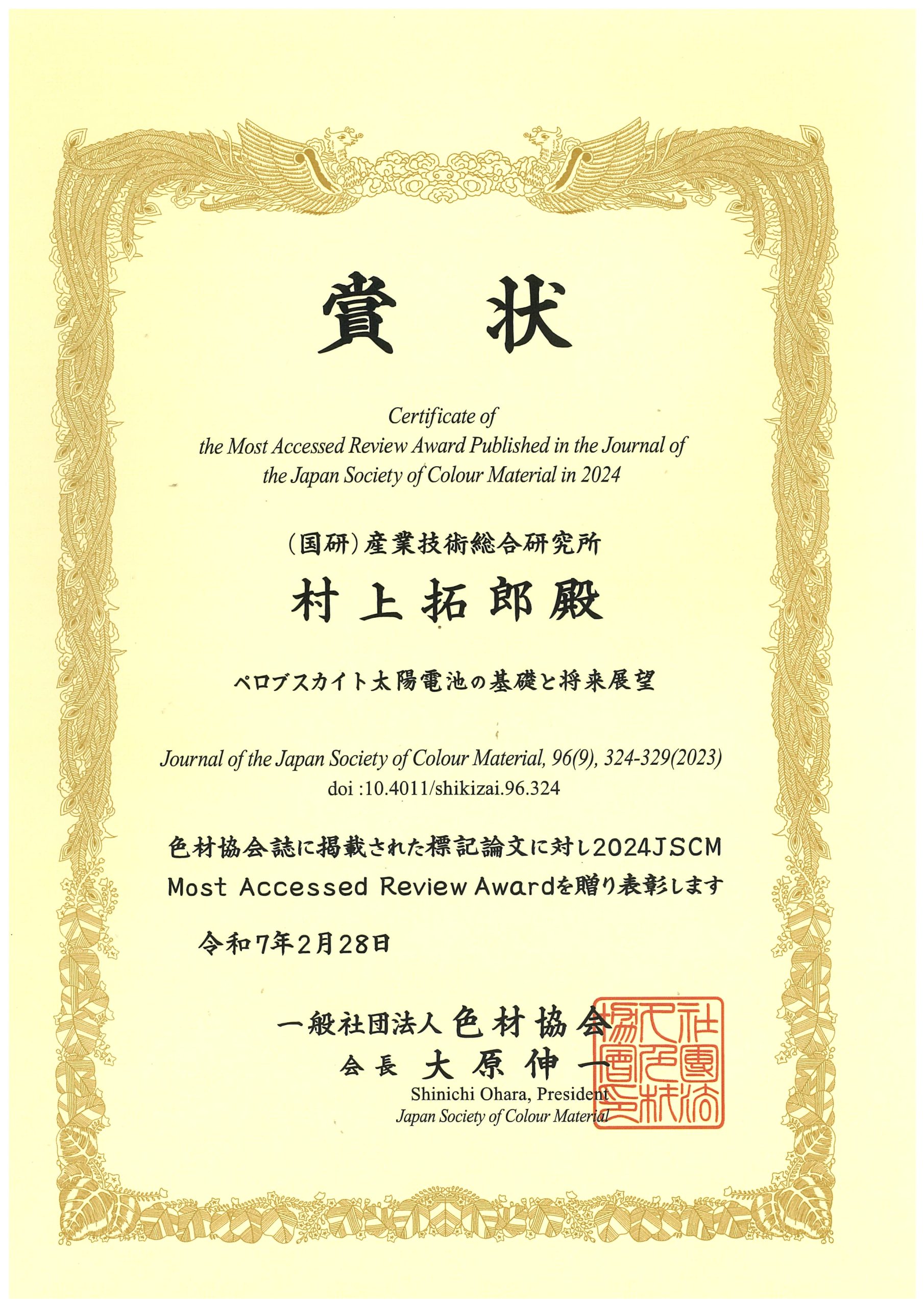 Poster Prize 西村 直之、神田 広之、村上 拓郎産総研:ゼロエミッション国際共同研究センタ。
