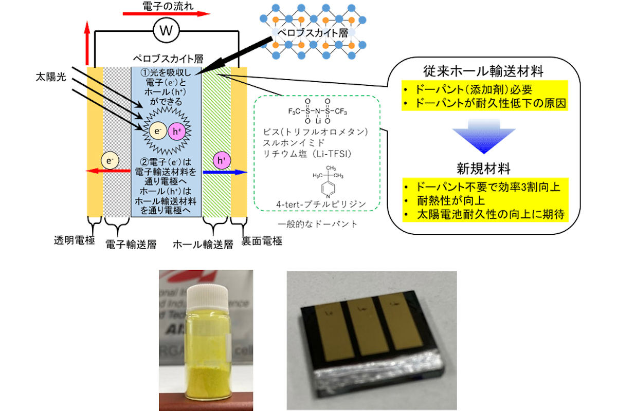 ペロブスカイト太陽電池の耐久性向上に貢献する新規有機ホール輸送材料の開発に成功 -ドーパント不要の有機ホール輸送材料- AIST CEND。