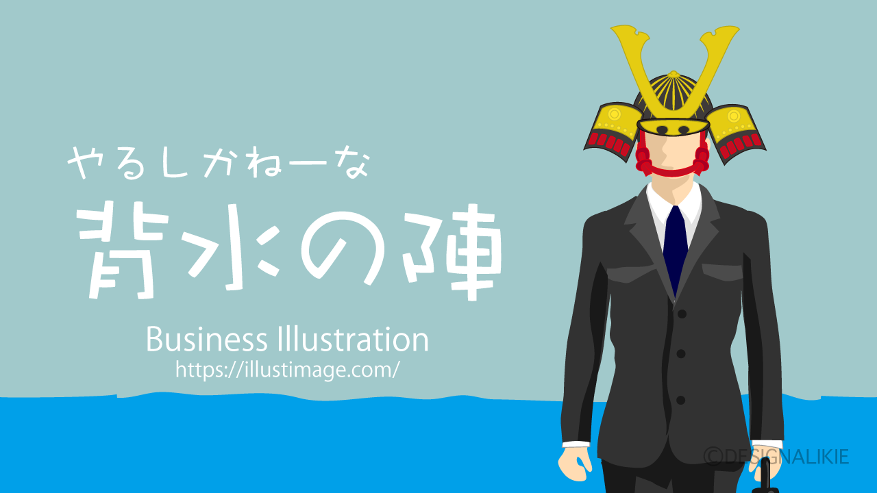 背水の陣で向かうビジネスマンイラストのフリー素材イラストイメージ。