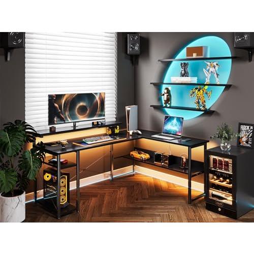 ODK パソコンデスク L字型 幅137 155 ゲーミング 机 棚付き コーナー 収納 エル字 3段階モニター台付き オフィス 仕事用 在宅勤務組立簡単 パソコンデスク 幅137 ゲーミングデスク デスク l字 机 棚板高さ調節可能 3段階モニター台付き 収納 仕事用 収納袋付き L字。