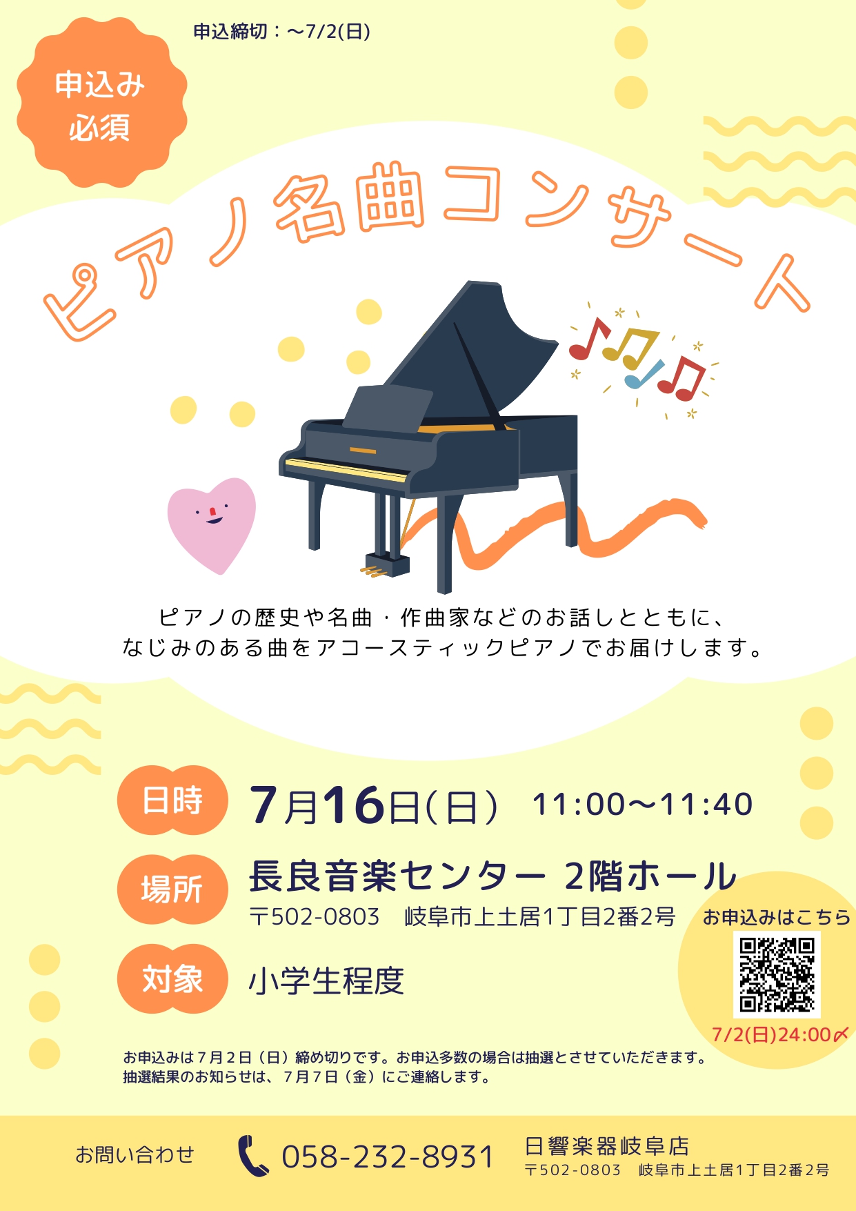岐阜店 7月16日 日 開催 ピアノ名曲コンサート - 日響楽器。
