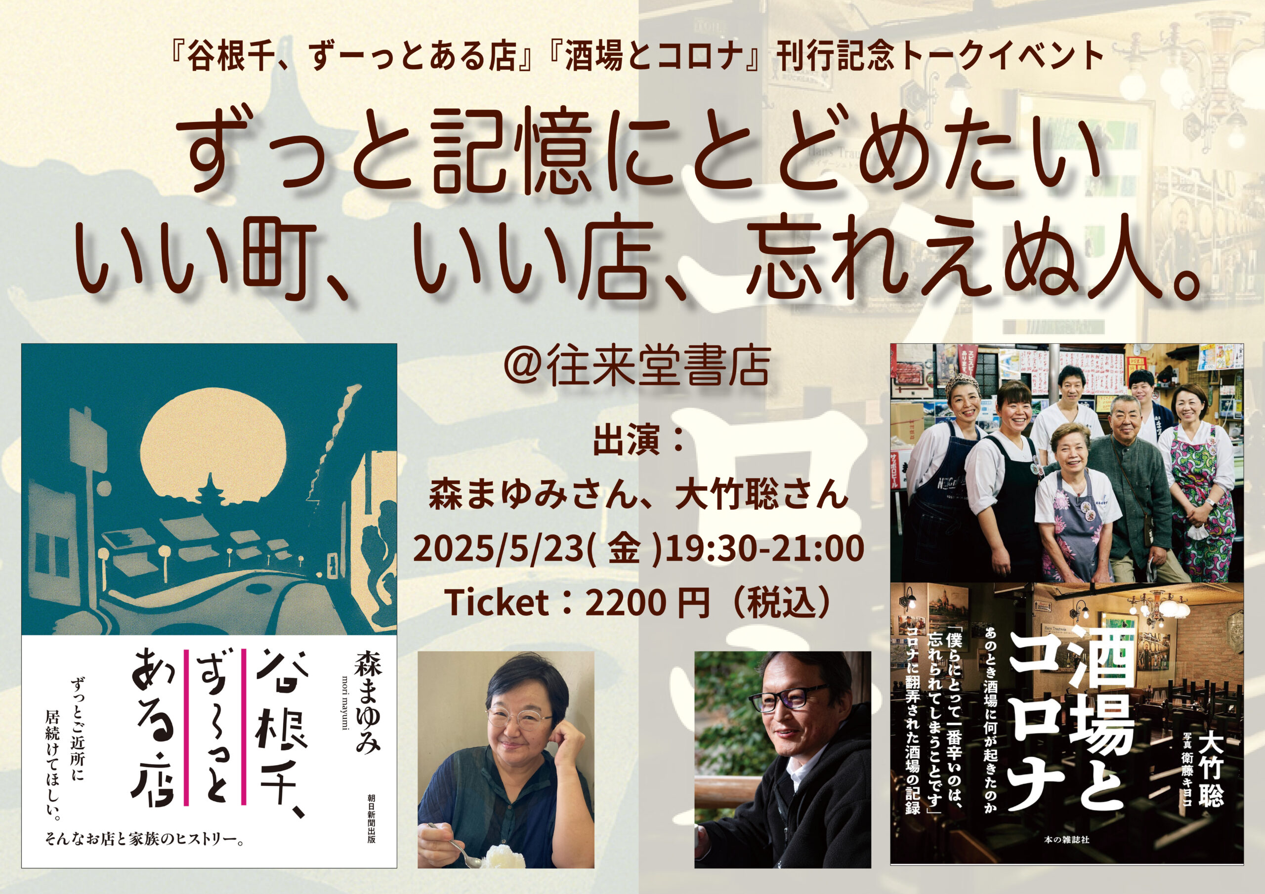 満員御礼_2025 5 23 金森まゆみ×大竹 聡トーク『ずっと記憶にとどめたい いい町、いい店、忘れえぬ人。」 - 往来堂書店。
