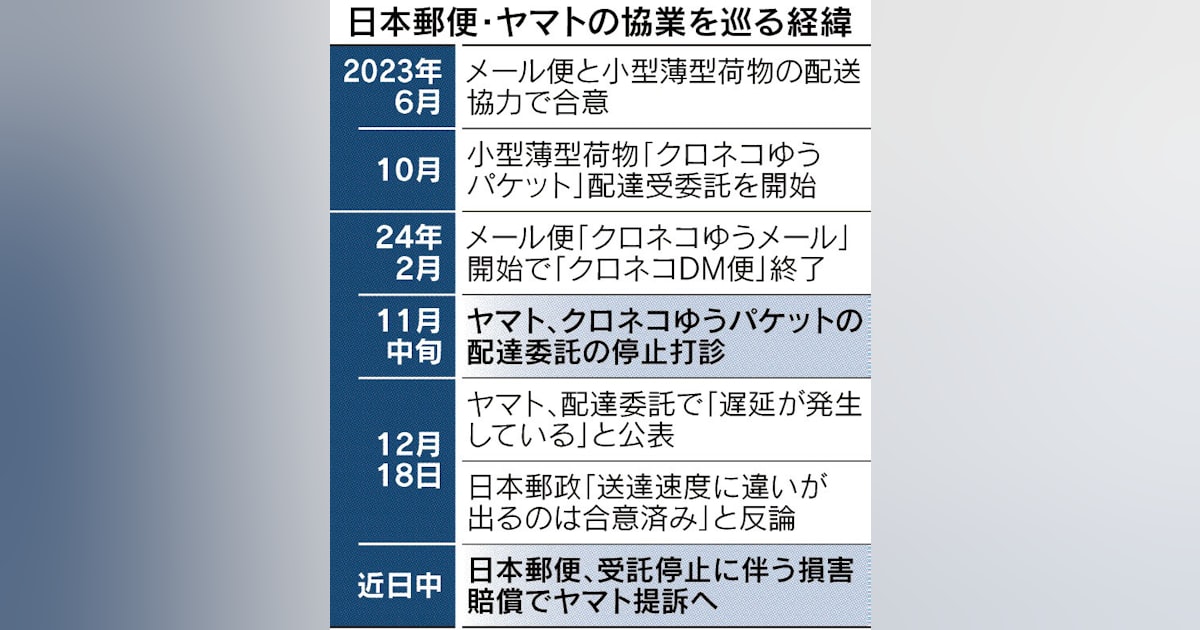 日本郵便、ヤマトを提訴 配達委託の一部停止巡り - 日本経済新聞。