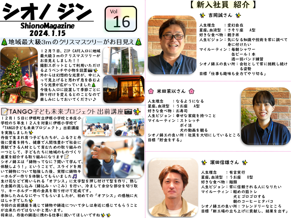 📰社内報 シオノジン 第27号📰株式会社シオノ鋳工。