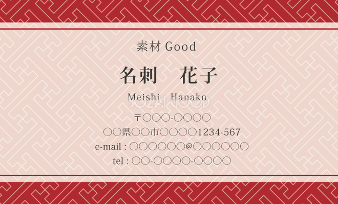 おしゃれ名刺デザイン 和柄イラスト無料テンプレート82110素材Good。