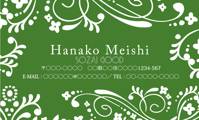 おしゃれ名刺デザイン 植物のつたイラスト無料テンプレート80659素材Good。