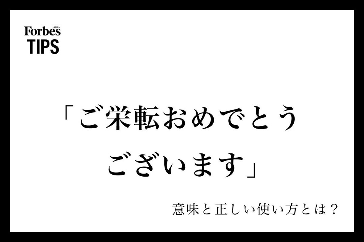 ご栄転おめでとうございます」の意味とは?ビジネスシーンでの使い方と言い換え表現を例文付きで解説Forbes JAPAN 公式サイト フォーブスジャパン。