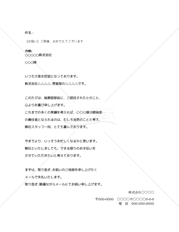 昇進祝いのメール お祝いやお礼のメッセージ文例書き方マナー開業・開店・移転祝いにWebカタログギフト「オフィスギフト」。