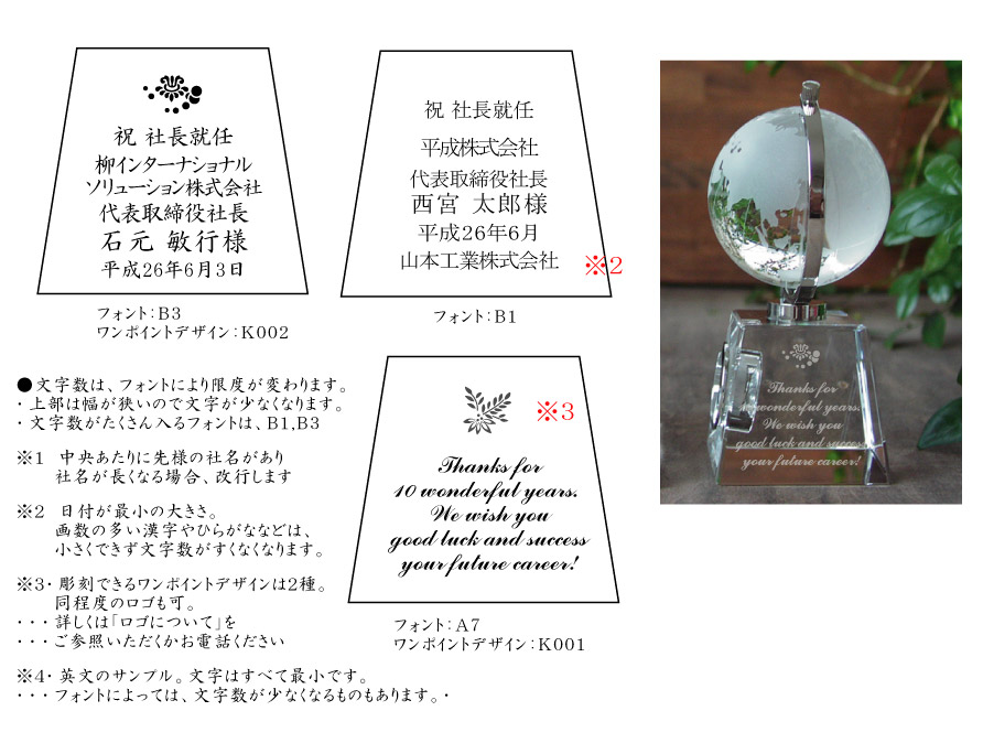 就任祝い・昇進祝いの贈り物のデザイン&メッセージガラスアートギフト アトリエピジョン。