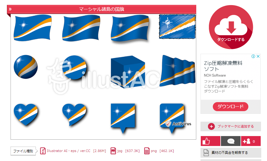 マーシャル諸島共和国の21種類の国旗イラスト無料ダウンロード。