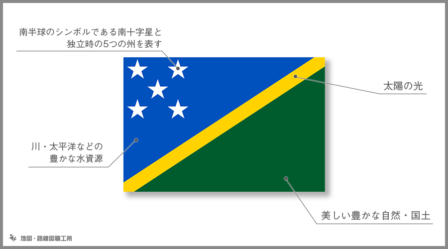 ソロモン諸島国旗の由来・意味や特徴をイラスト解説。
