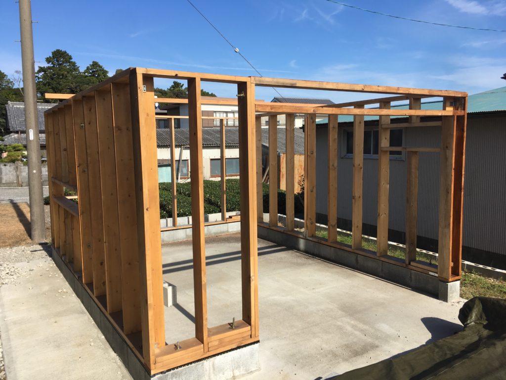 ガレージに小屋をDIYで作る:2〜壁パネル建て – ハナウタ。