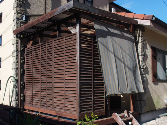 バイクガレージ・バイク保管庫を自作DIYで作製ウッドデッキのDIYリーベ。