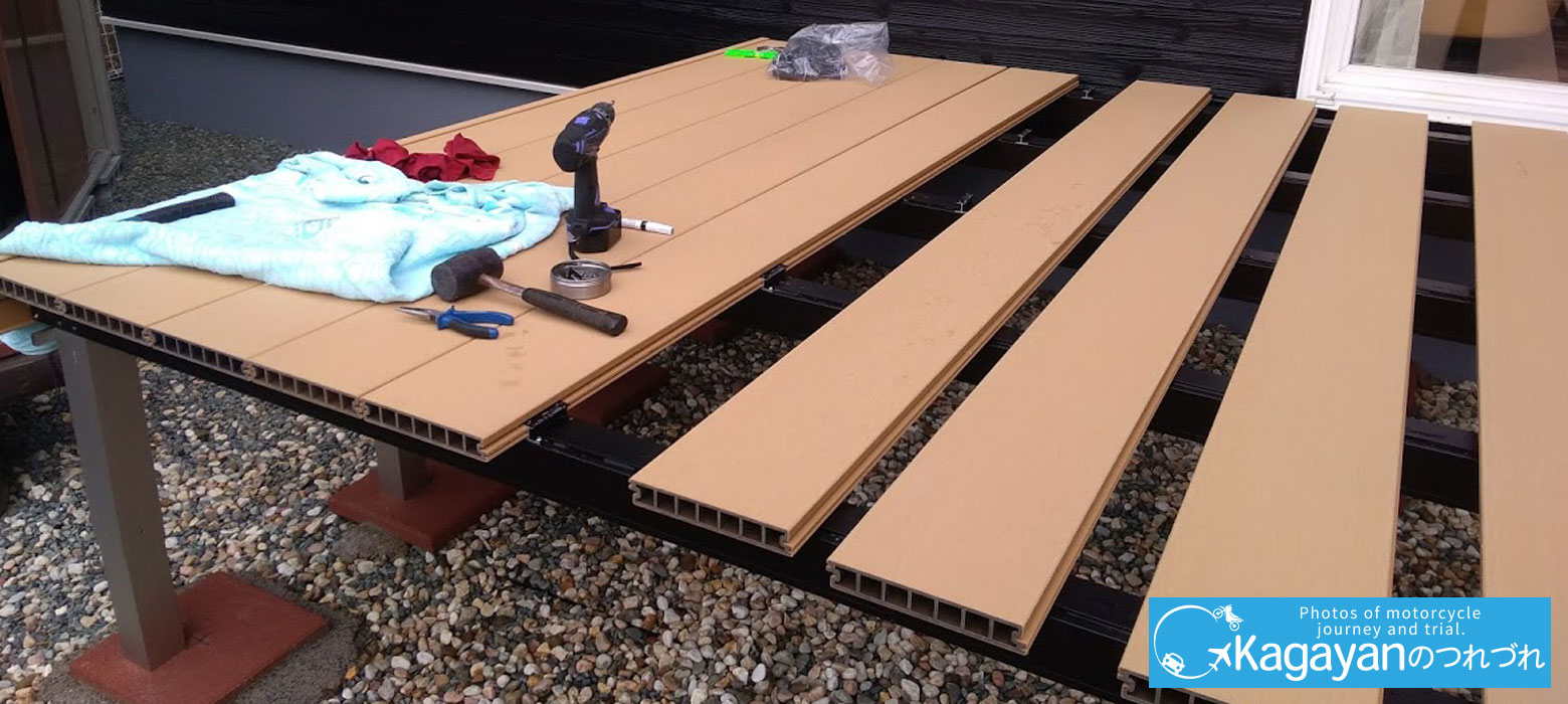 DIYブログ4.ガレージの隣にはバイク観賞用ウッドデッキをDIY。