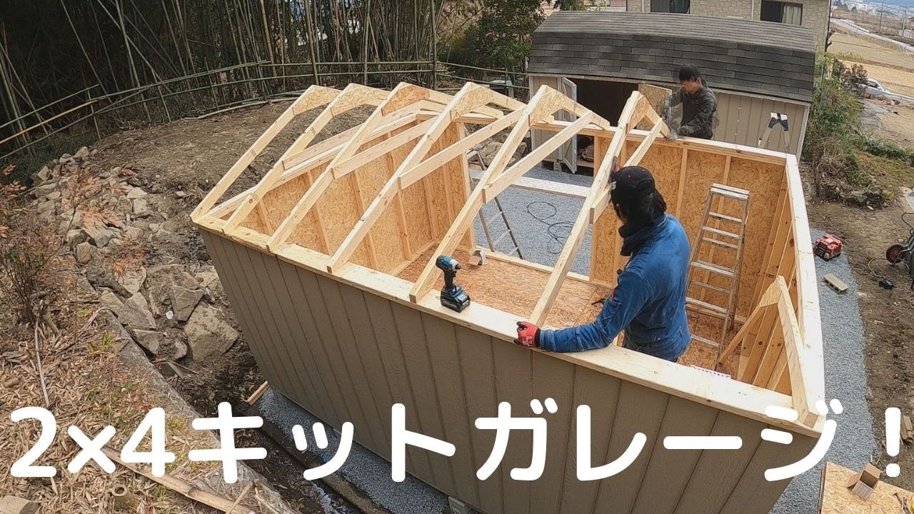 2×4組み立て式キットガレージで小屋を建てる。DIY。