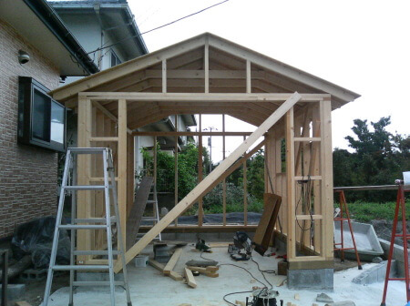 ホームセンターの材料で一人で作るガレージ 2x4でDIY。