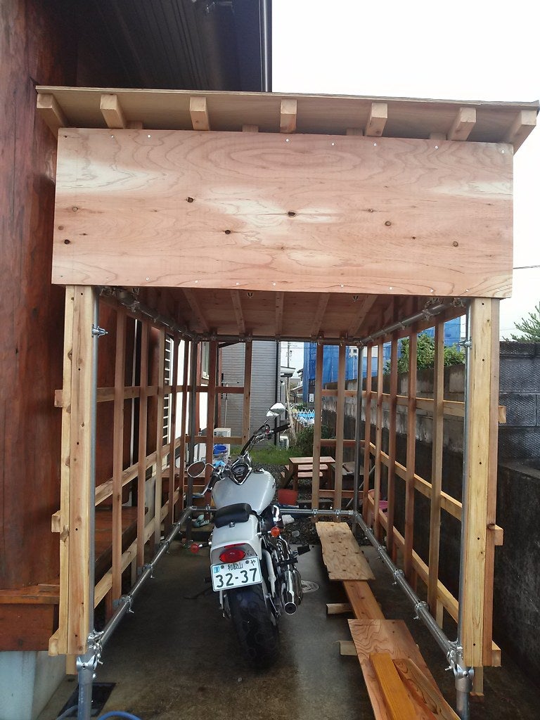 バイク ガレージ 単管パイプ。