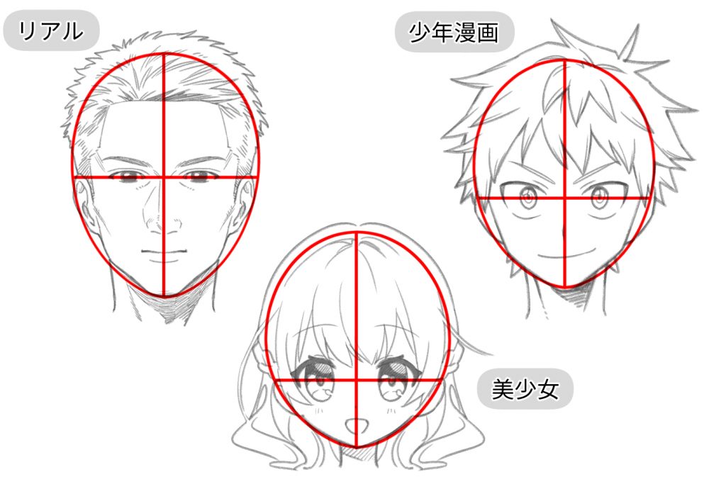 顔のアタリの描き方習得で顔イラストは上達できる!顔がゆがむ原因はアタリ - イラスト・漫画 マンガ 教室 egaco エガコ。