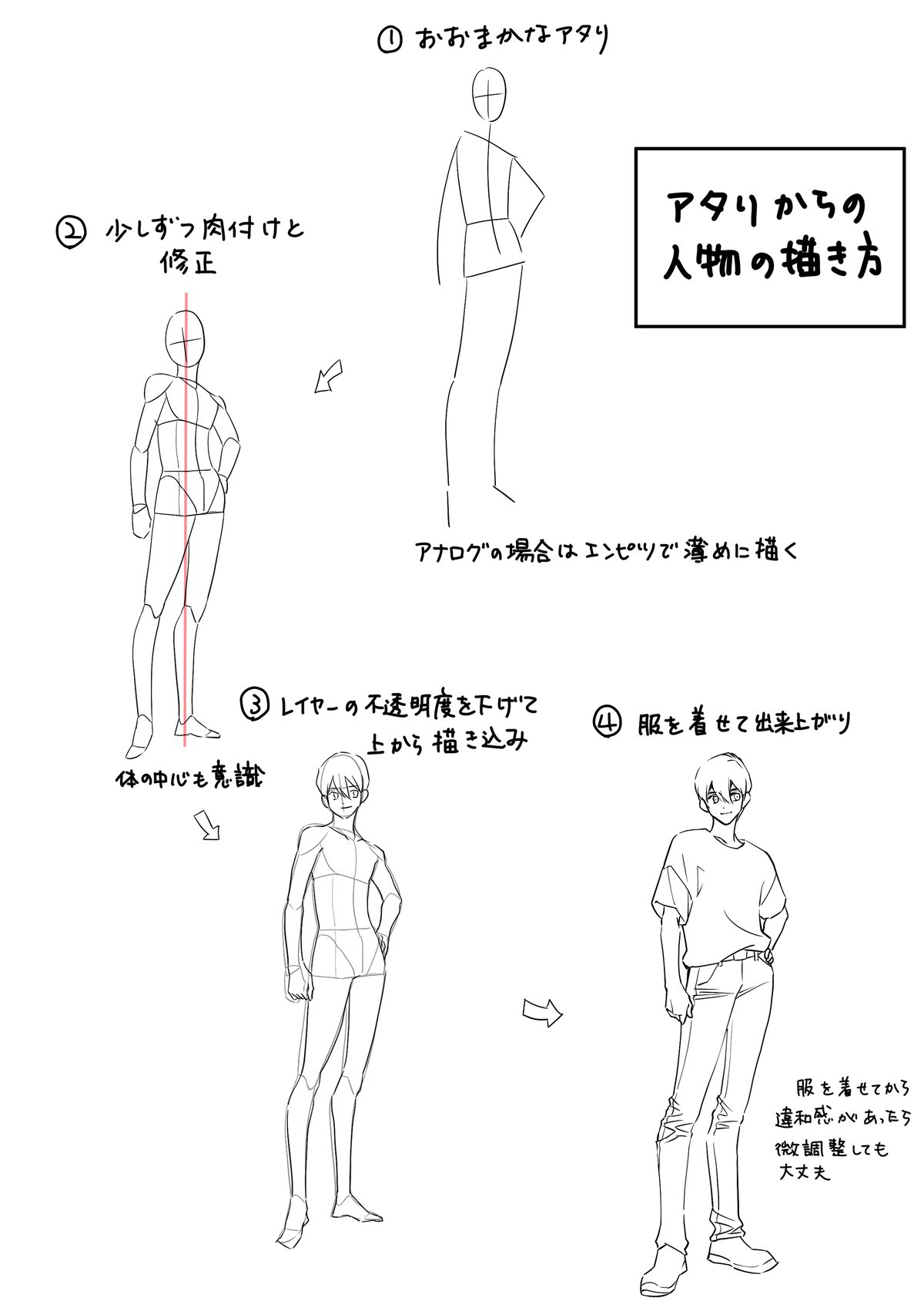 体の描き方!男のアタリやポーズの取り方は? 全身絵ってどう描くの。