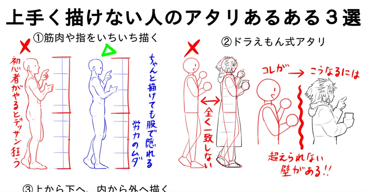 体の描き方 初心者はとにかくアタリを練習すべし!描き方のコツやバランスの取り方なども解説 イラストいららぼ。