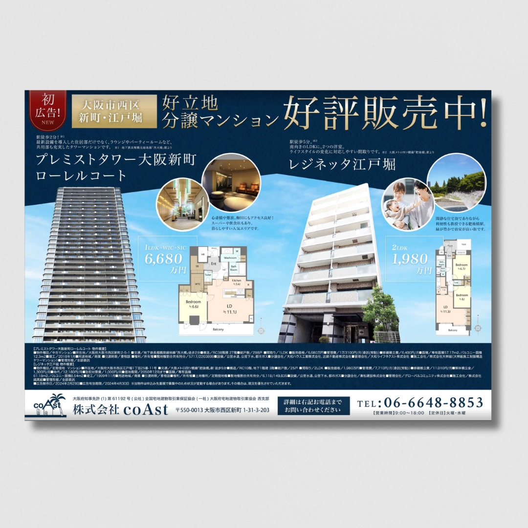 チラシ制作事例 – マンション・不動産の紹介チラシデザインASOBOAD。