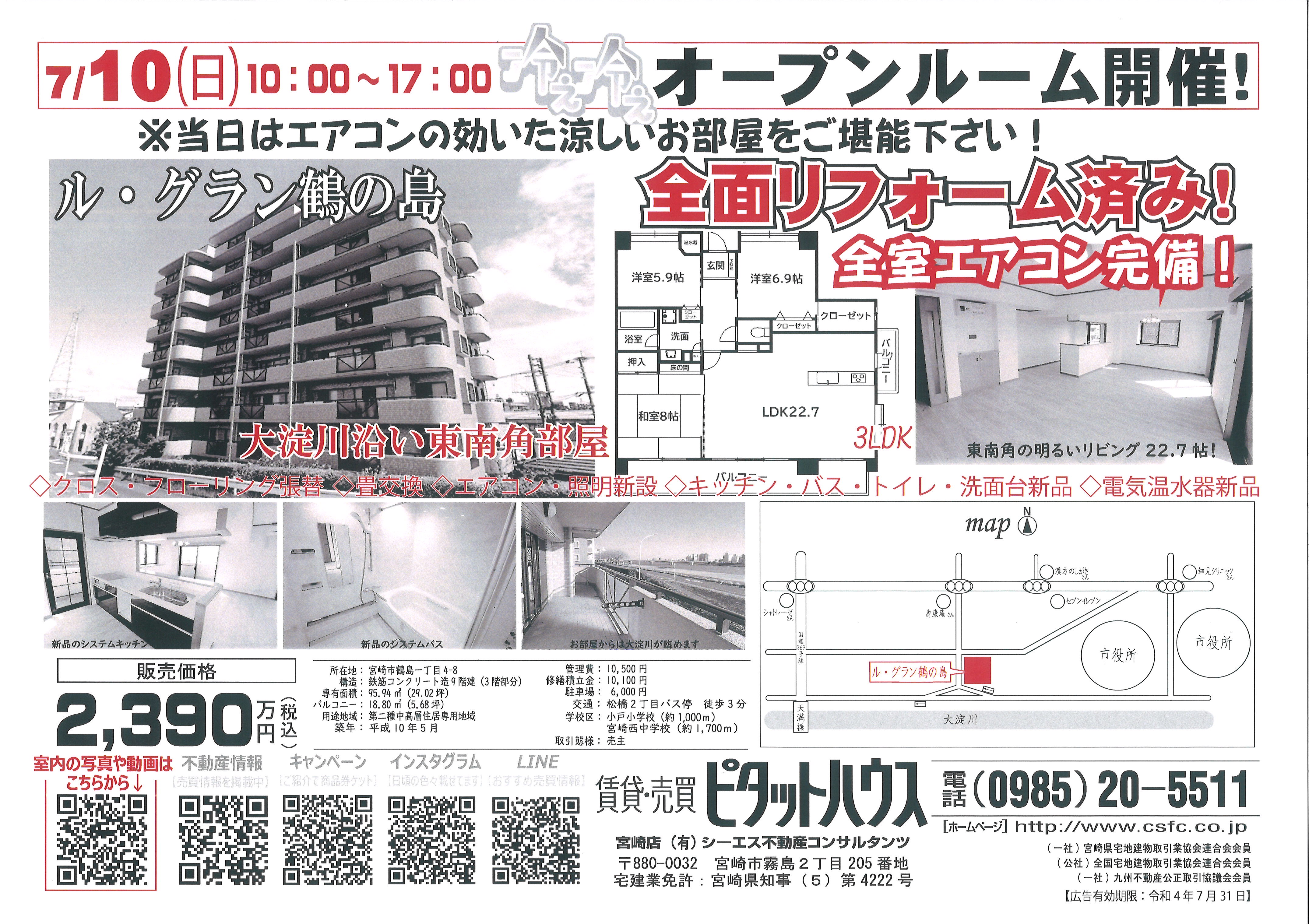 宮崎市鶴島1丁目 マンション 分譲マンション オープンハウス オープンルーム 折込チラシ2022 07 09更新 7月9日 土 「ル・グラン鶴の島」の折込チラシが入ります宮崎市の不動産・売却のことならシーエス不動産コンサルタンツ ピタットハウス宮崎店。