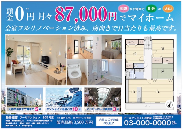中古物件を売りたい!不動産チラシを作成するときのポイントホームページ制作なら板橋区の株式会社アールクリエイト。