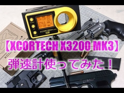 弾速計でエアソフトガンの初速を測ってみた! XCORTECH-X3200-MK3 マルイのエアリボルバー、海外ものエアコキ、KSC-TT33、それぞれ測定光景です。