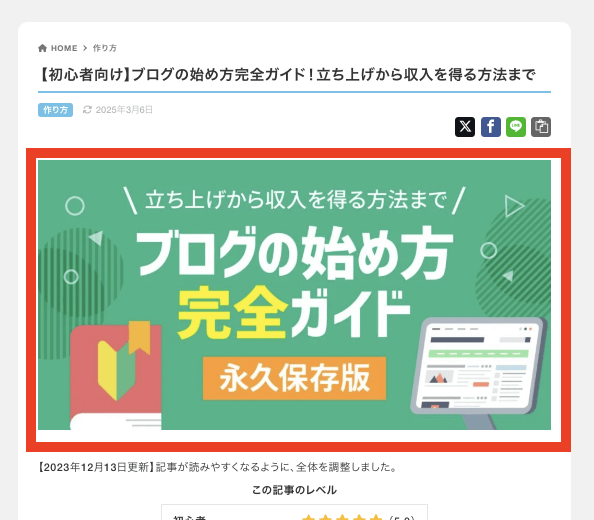 5分でできる簡単アイキャッチ画像の作り方!WordPressブログの設定方法まで徹底解説 – 初心者のためのブログ始め方講座。