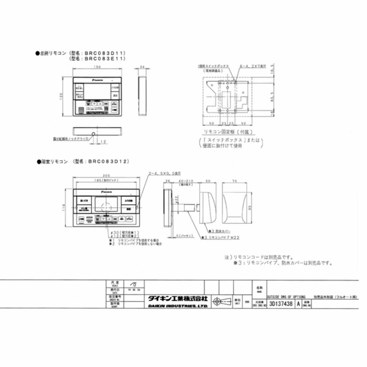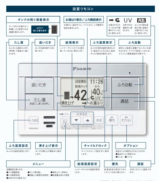 ダイキン製エコキュート 風呂&台所リモコンセット。