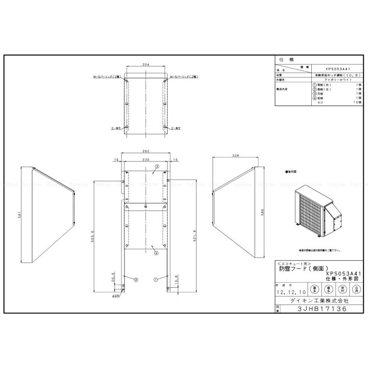 楽天市場 ダイキン KPS053A41 2022年 : エコキュート用 ヒートポンプユニット 防雪フード 吸込側面 ∴・DAIKIN・ :たね葉。