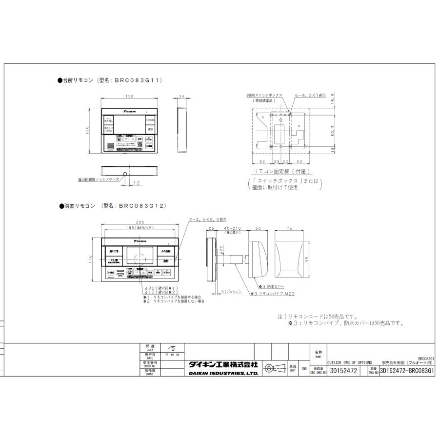 エコキュート リモコンの寸法を教えてください。 - 電気給湯機器 - Panasonic。