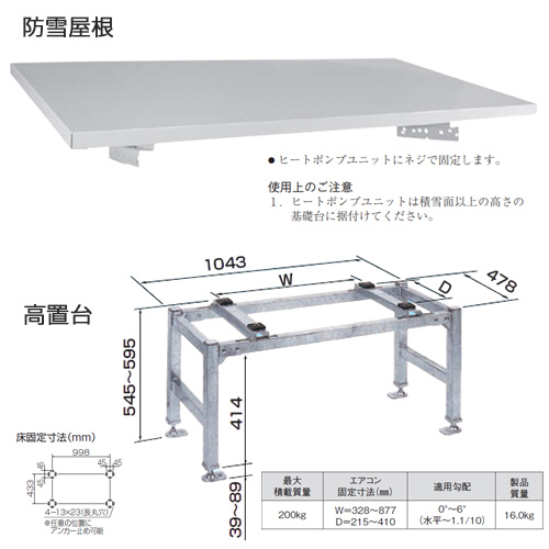 ダイキン エコキュート関連部材 K-KHZ105G 平置台 高さ500。