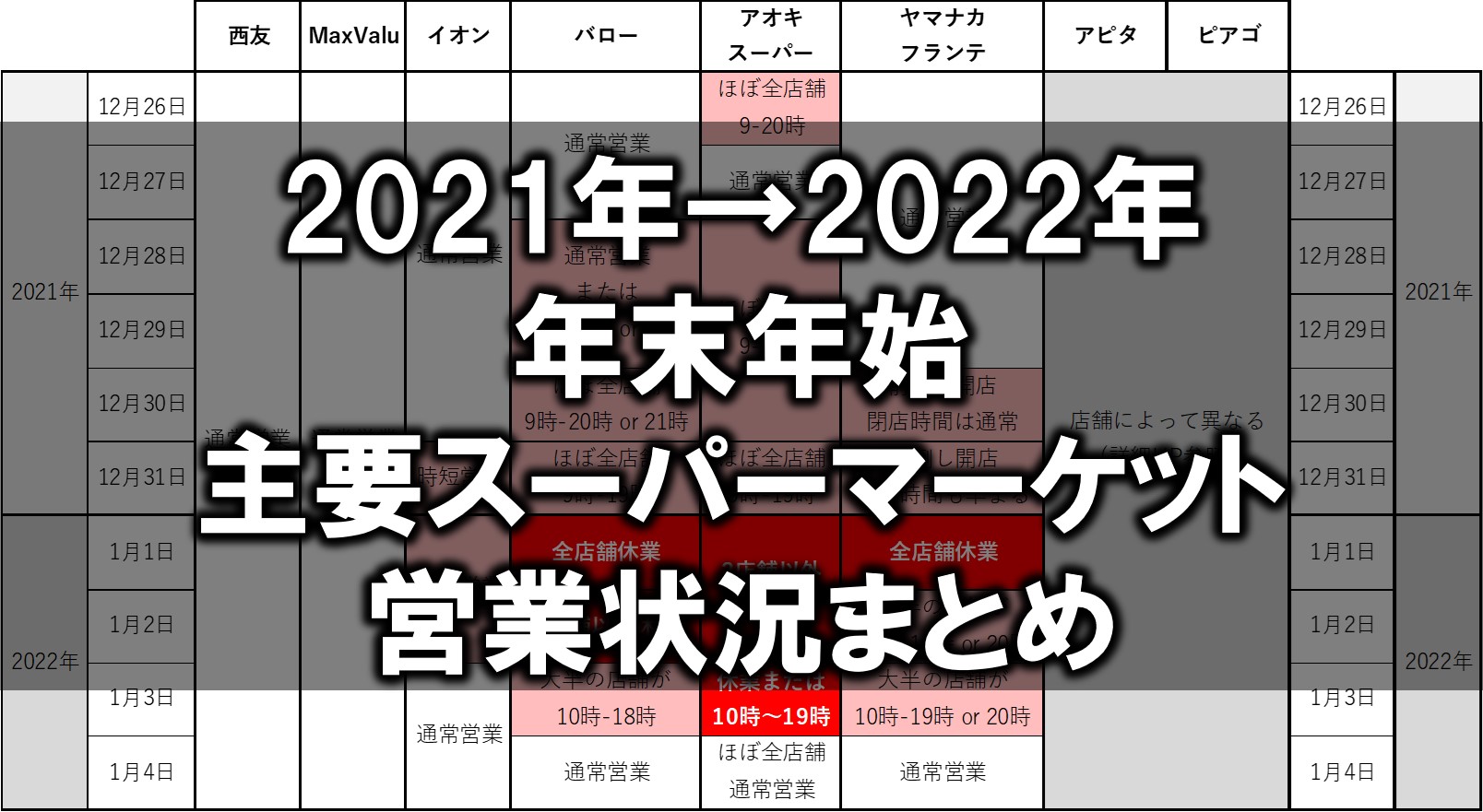 年末年始の主要スーパーの営業状況まとめ 2021年から2022年名古屋子育て情報局。