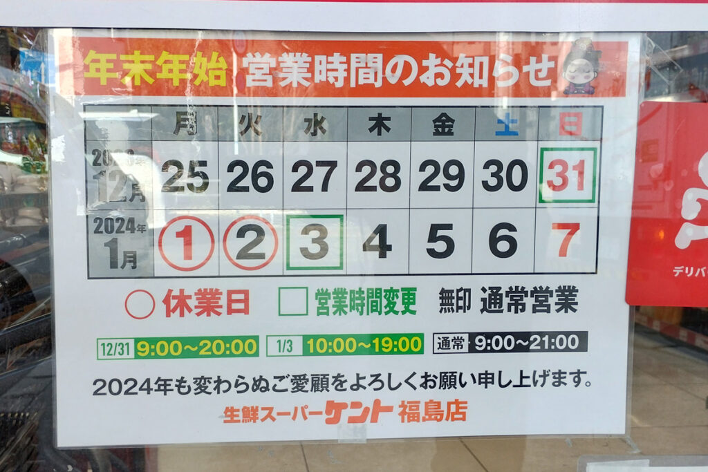 年末年始 2023年→2024年のスーパー営業日まとめ – 大阪市福島区のローカルブログ「福島区在住」。