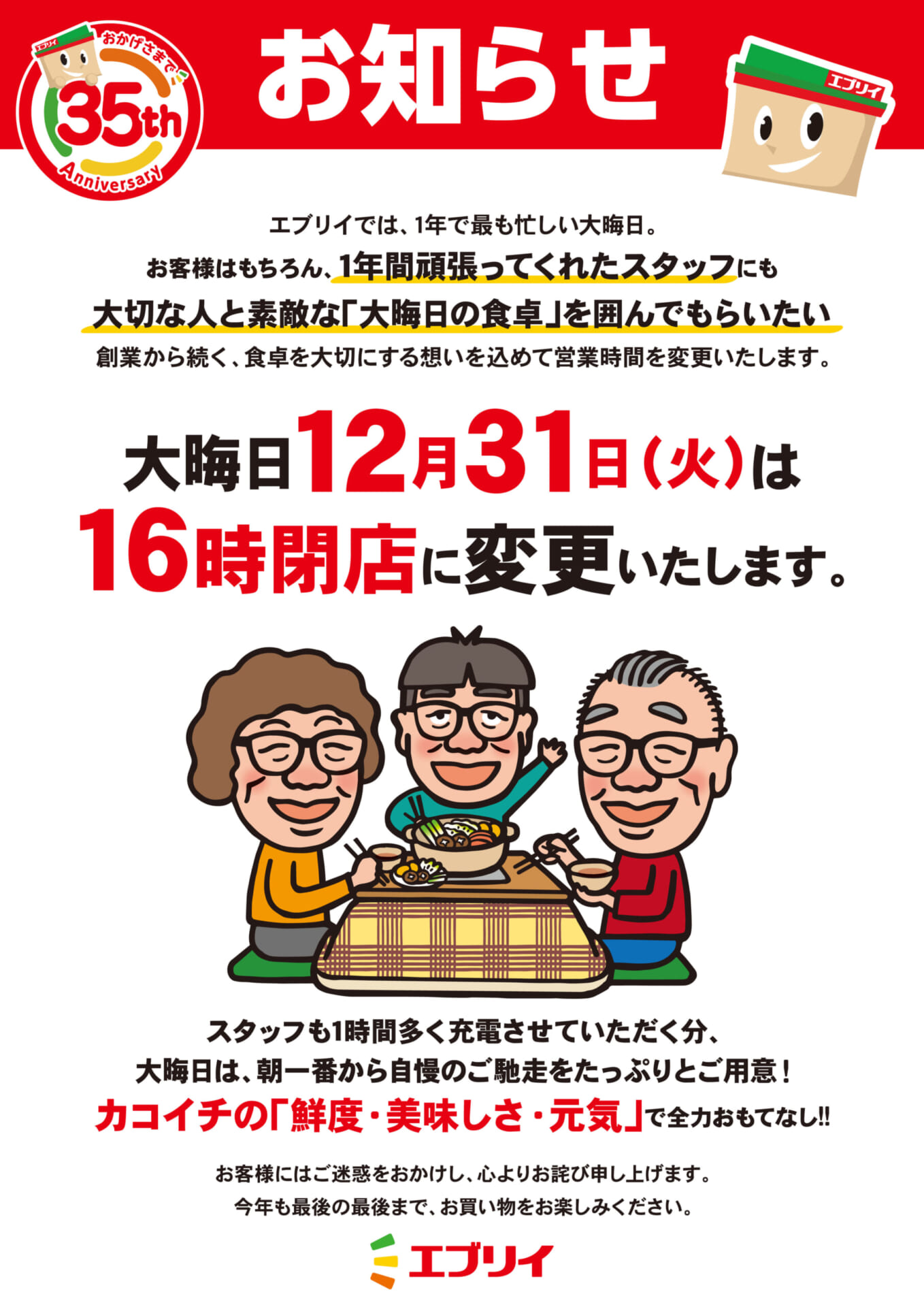 年末年始 営業時間のご案内よい商品の提供 千葉のスーパー ナリタヤ。