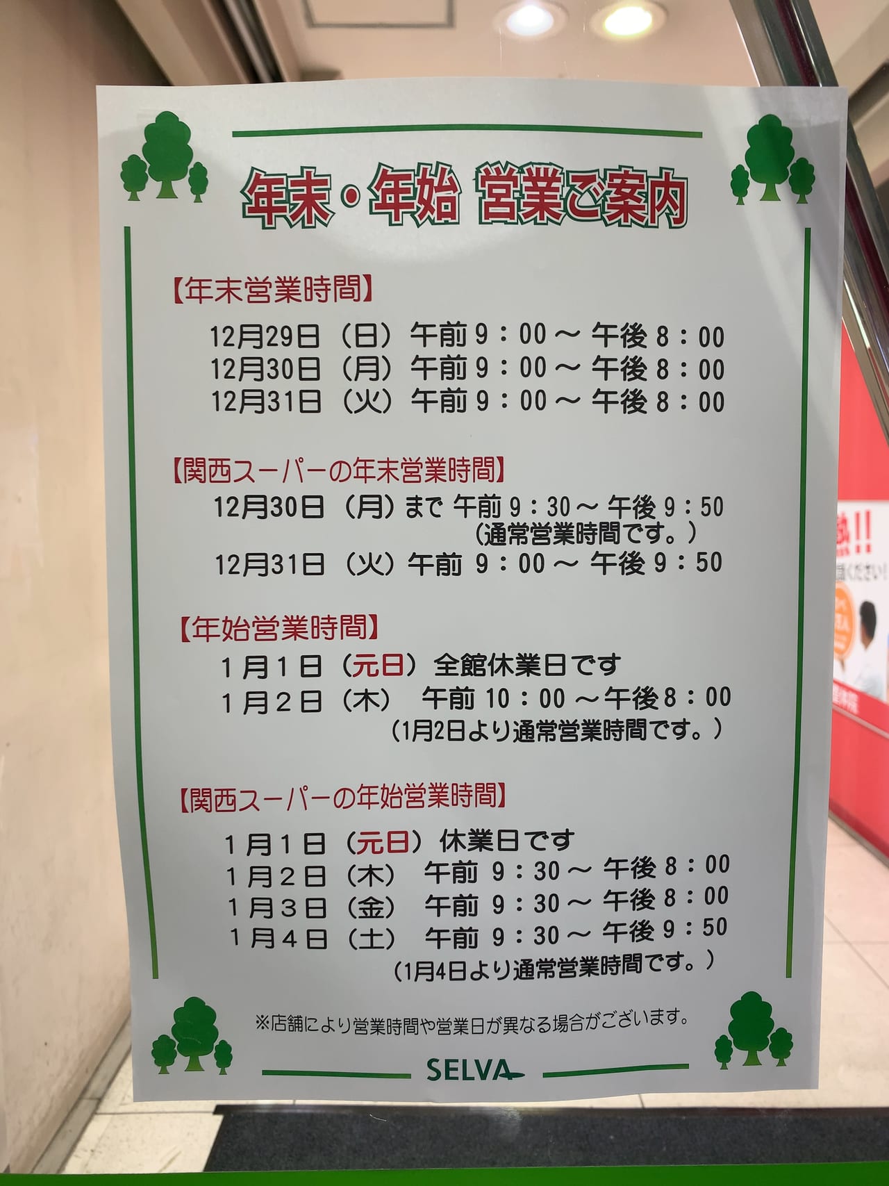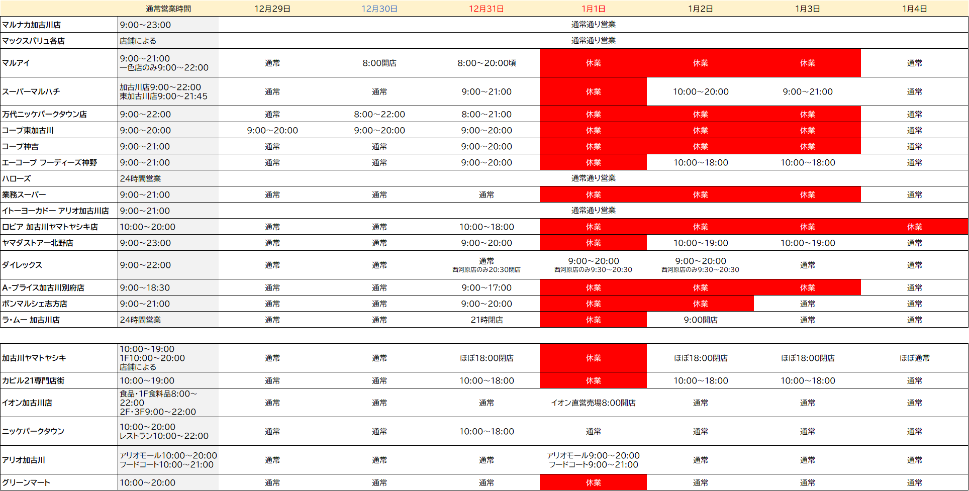 2023大晦日-2024正月 加古川市内のスーパー・商業施設の年末年始休業まとめ 元旦営業もかこがわノート。