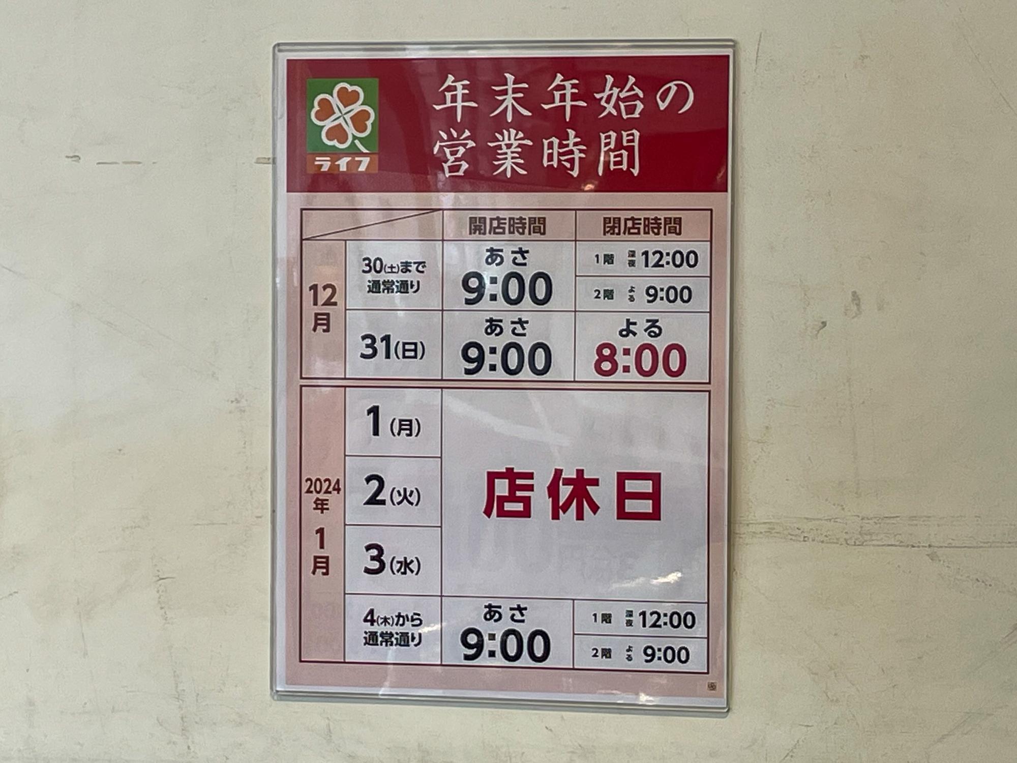 スーパーマーケット・コンビニ - ライフ年末年始の営業時間!年始は店舗お休み?2025年最新情報。
