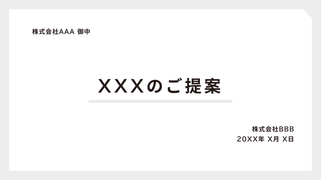 企画書・提案書テンプレートの作り方基本的項目表紙。
