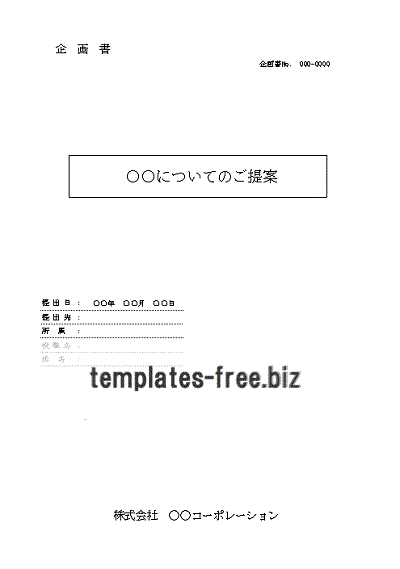 企画書表紙 - 無料でダウンロードできるフォーマット テンプレート・雛形。