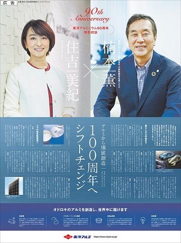 日本経済新聞に創立90周年の対談広告を掲載しました。新着情報東洋アルミニウム株式会社。