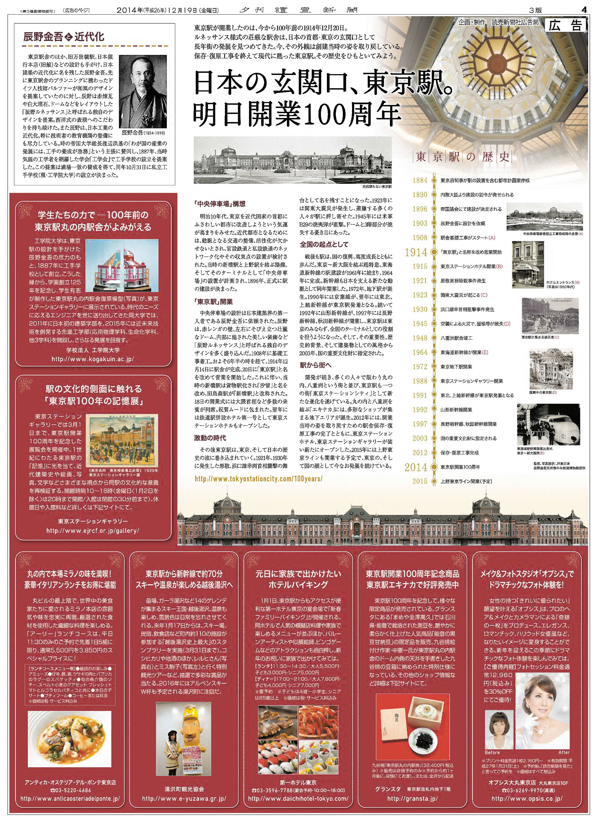 東京駅開業100周年」特集』新聞広告データアーカイブ。
