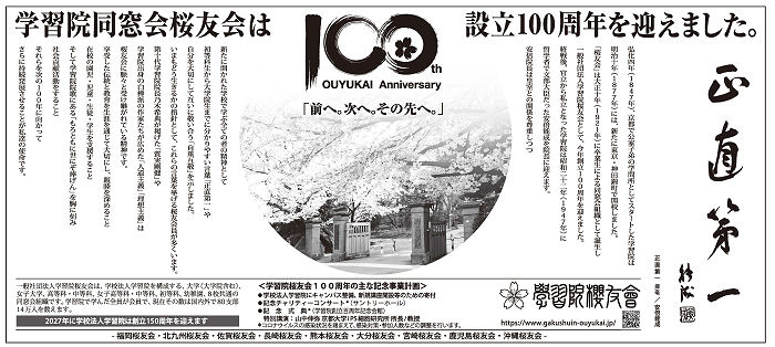 100周年記念新聞広告 – 学習院同窓会「桜友会」設立100周年記念サイト。