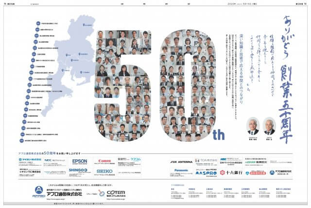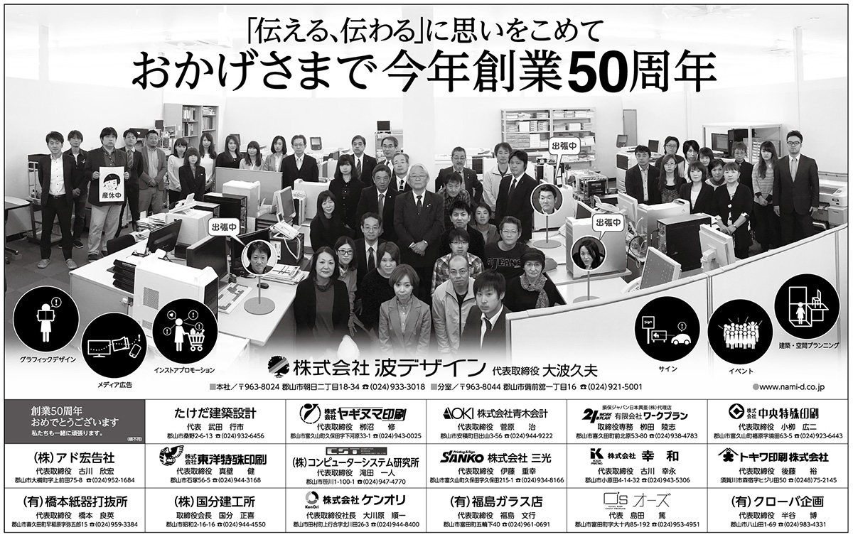 50周年記念新聞広告を掲載いたしました株式会社 波デザイン。
