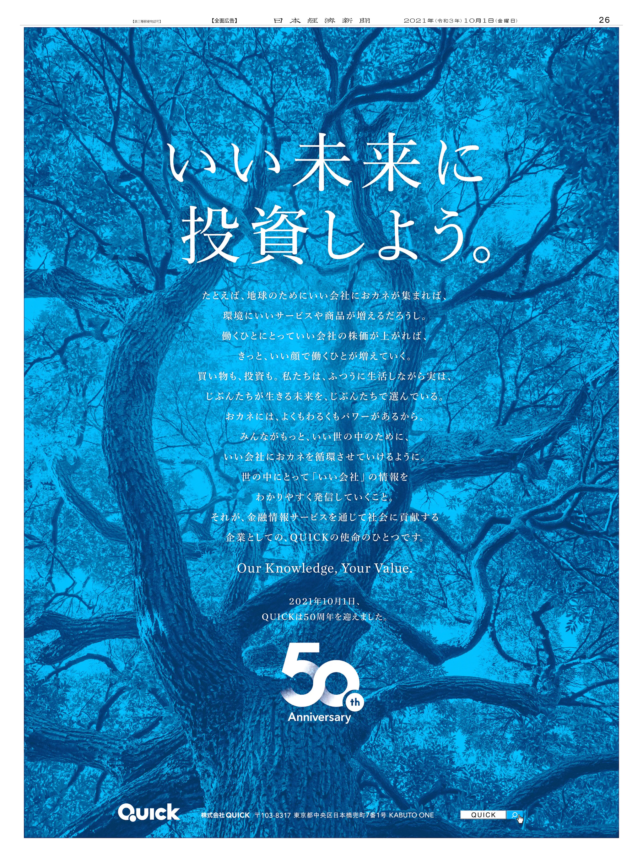 設立50周年記念 新聞・雑誌広告 – 総合広告代理店 サンヨー東京都中央区日本橋。